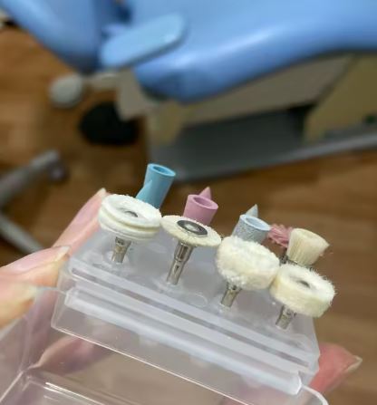 Cuenta con diferentes puntas y materiales que ayudan en el acabado, alisado y brillo final de restauraciones y superficies dentales.