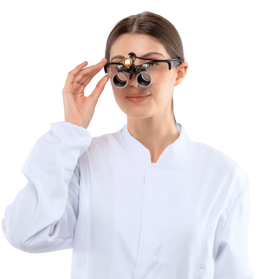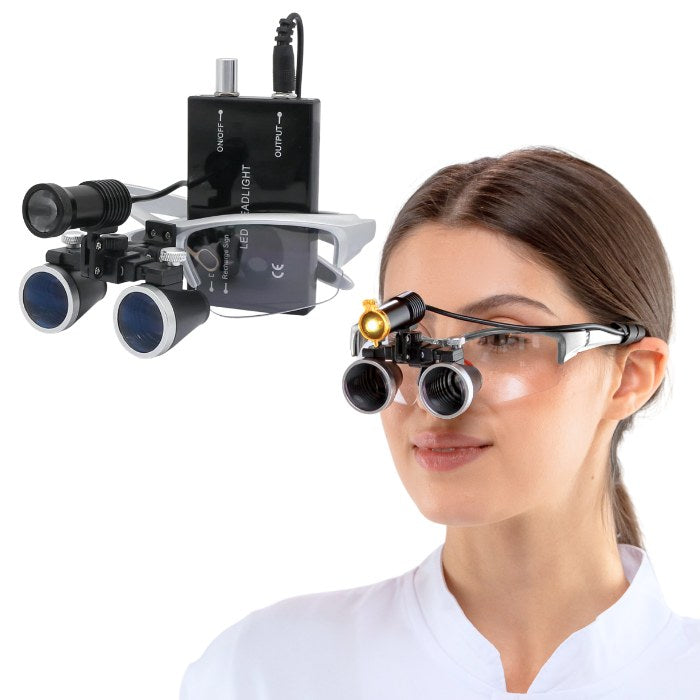 Lupa X1 con Lentes de 2.5x o 3.5x y Lámpara Frontal de 5 Watts