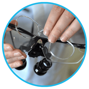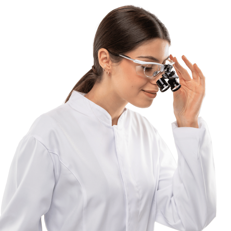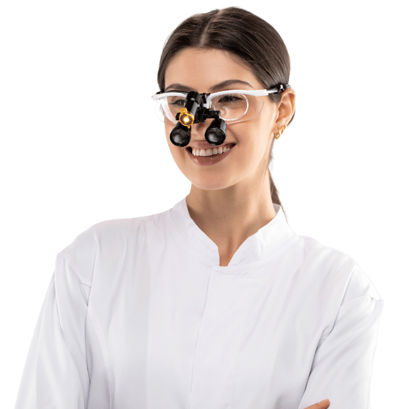 Lentes de vidrio con ampliación de 2,5x y 3,5x, además de distancias focales de 25 a 55 centímetros. ¡Con los lentes binoculares ya no necesitarás estar tan cerca de su paciente!