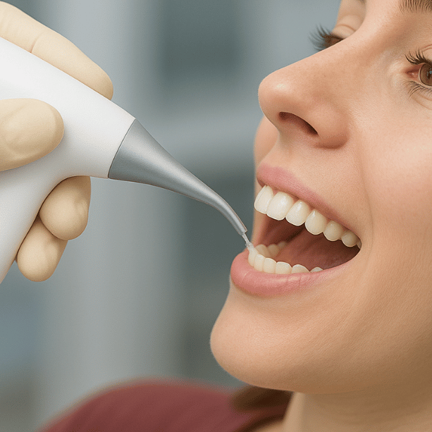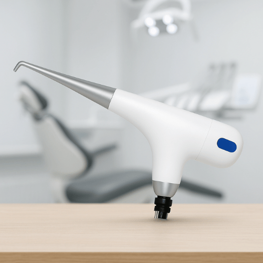Además, cuenta con un diseño de dos etapas para facilitar la carga, descarga, limpieza y mantenimiento, y un conector de cable extraíble que simplifica la limpieza del polvo. Su construcción pequeña y ligera (140g), combinada con una ergonomía mejorada, ofrece mayor comodidad y reduce la fatiga del operador. Todo esto se traduce en resultados visibles, eliminando eficazmente las manchas para mejorar la estética y la salud bucal.